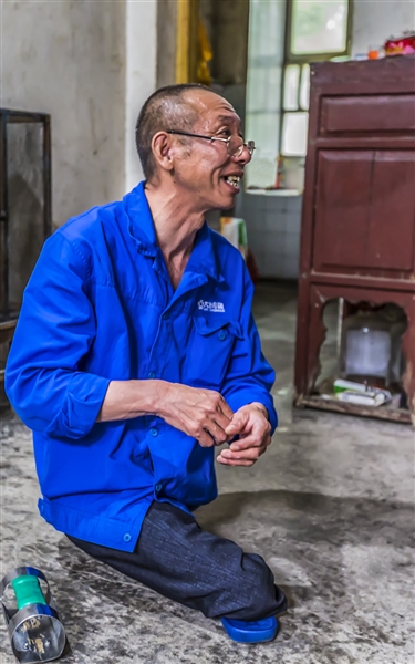 十年前,大冶有色金属公司的工友用不锈钢给他做了一对“铁掌”,这对“铁掌”成了他出行的标配,一直用到现在。