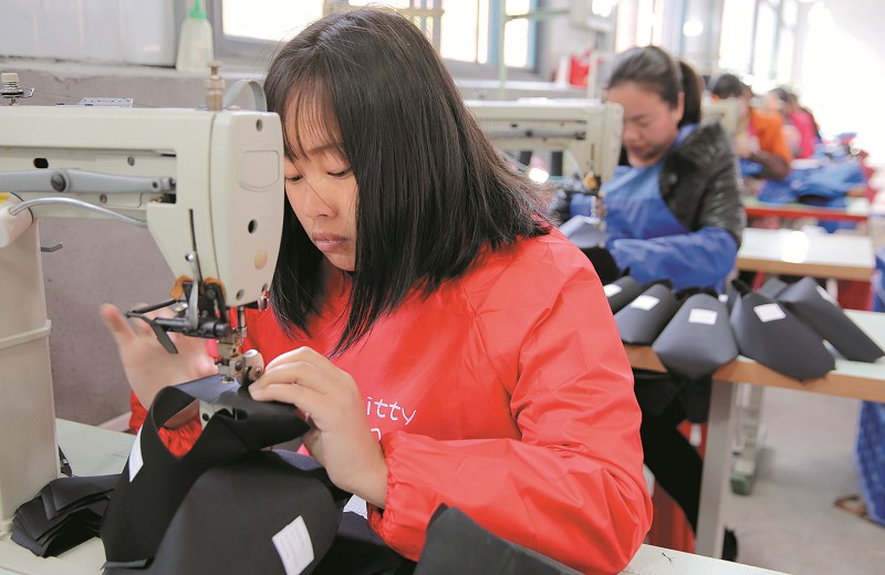 “每月能挣两千块钱,够补贴家用了。”徐中惠说,2018年11月,香口乡建起吨袋加工扶贫车间,为乡里留守妇女提供岗位50余个。