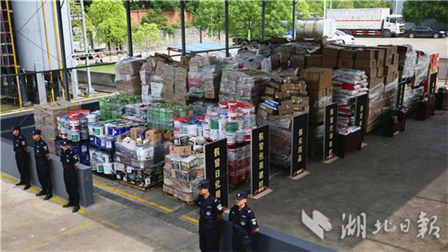 4月26日,集中在咸宁市咸安区湖北汇楚危险废物处置有限公司的侵权假冒酒类,等待销毁处理。