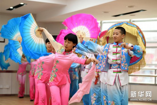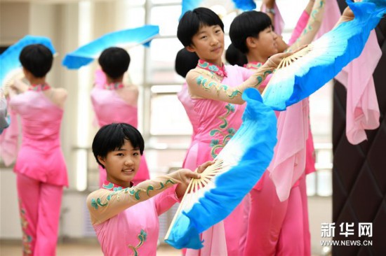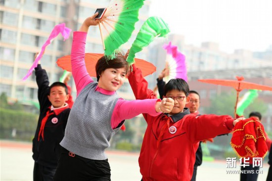 近年来,河北省石家庄市第四十四中学将井陉拉花等非遗项目引进校园,并结合现代音乐改编为课间操,让学生们在强身健体的同时学习传承传统非遗文化。井陉拉花属北方秧歌,历史悠久,已被列入第一批国家级非物质文化遗产名录。 (新华社发 许建园摄)
