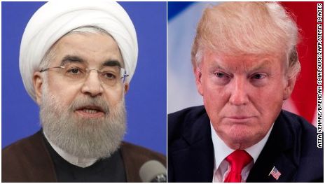 伊朗总统鲁哈尼(左)与美国总统特朗普