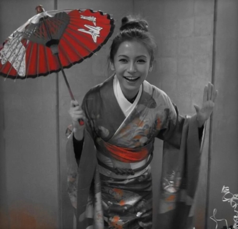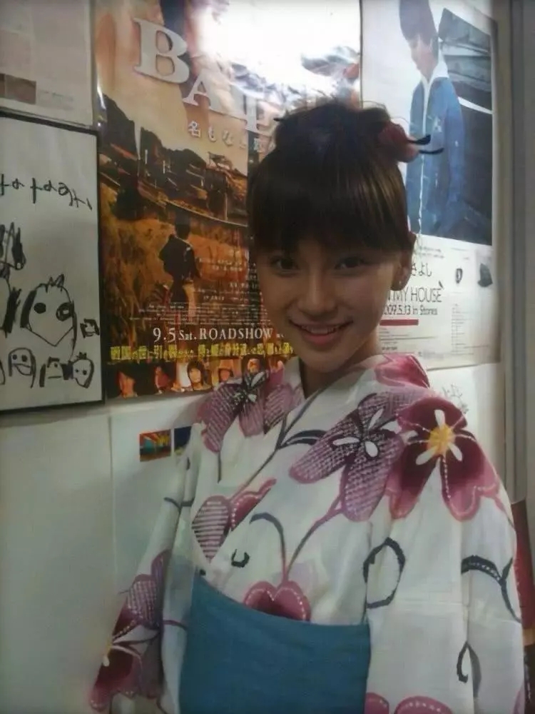 近日,Angelababy一组和服旧照曝光,照片中的baby,留着齐刘海发型,穿着印着粉色花朵的和服,对着镜头甜甜一笑,十分可爱甜美。