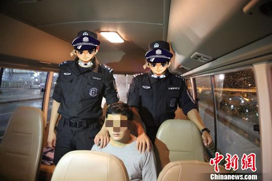 图为警方押解犯罪嫌疑人。 蒙剑锋 摄