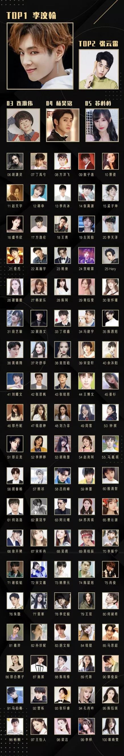 比如最近一份粉丝投票选出的“中国最美100张新面孔榜单”——