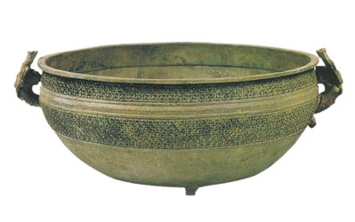 说句题外话,中国目前最早的法律判决书就发现在一件匜上——陕西省岐山县西周铜器窑穴中的“朕”(人名)匜。上面的铭文大意是一个叫牧牛的人,因和他的上司师(人名)争夺五个奴隶,打了一场官司。法官伯杨父当着周王的面宣布对牧牛的判决,要求他把五个奴隶还给上司,还要打五百鞭子,并罚一大堆铜(铜在古代很珍贵)。