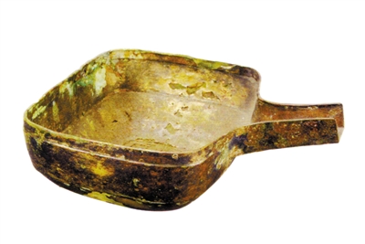 西汉南越王博物馆中,藏着成套的西汉年间青铜盥洗器具,当中就包括一套青铜匜,一共16件,此外还有一件银的。这一组铜匜大小套合,岁月久远,都锈蚀在一起。其中的一件有“蕃”字铭文,说明它们是南越国自制的。
