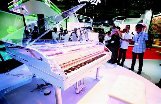 柏斯音乐集团张凡介绍:“除了这架限量版钢琴,我们还展示与教育部合作研发的全球首创‘音乐教育信息化教学系统’。”该系统在保持传统钢琴特性的基础上,对钢琴自动演奏系统功能进行拓展和改造,通过提升硬件设备与软件功能,调动名家大师等作为网络教学资源,形成具有钢琴原声教学与电声教学共享模式的互联网+音乐教育信息化教学系统。