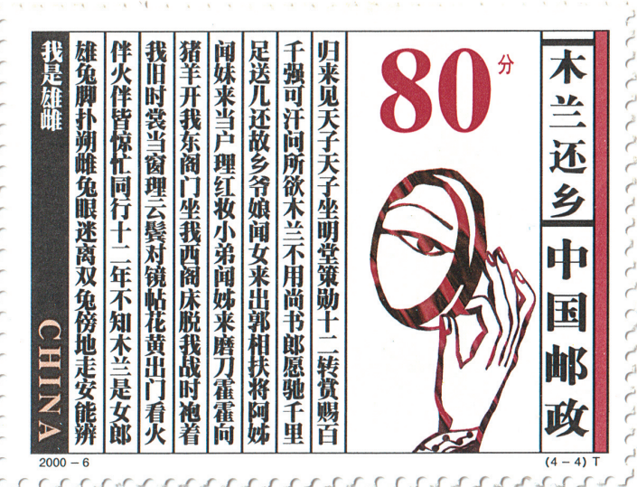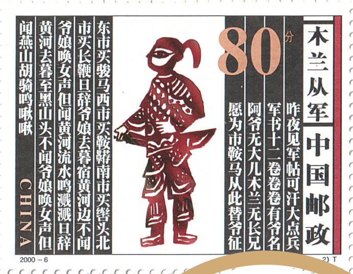 - 图为2000 年 发行 的《 木 兰 从军》邮票