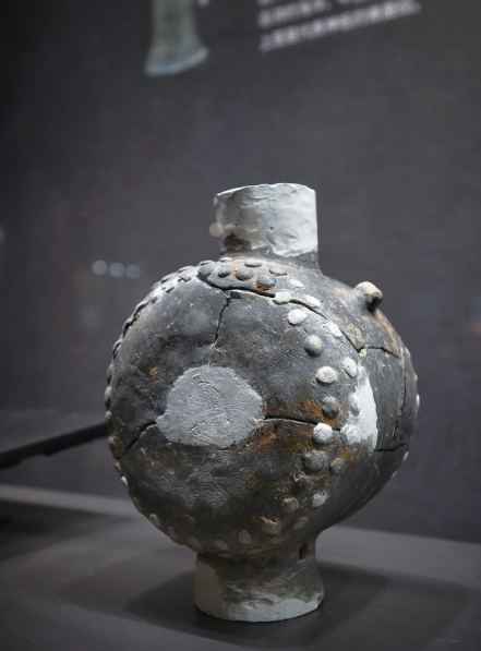 - 全城联动选在盘龙城启动,是世界邮展对城市的致敬。盘龙城是武汉城市起源之根,盘龙文化拥有3500年历史,是黄陂重要的文化名片。启动仪式所在的盘龙城遗址博物馆内藏有大量玉器、铜器、陶器,是研究了解中国南方早期文明的重要文物。图为盘龙城遗址博物馆展出的陶鼓形壶(商代)
