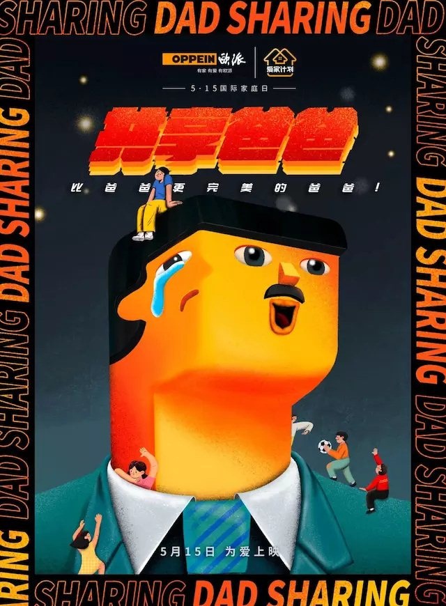 这支 5 分多的广告片虚拟了一种不存在的共享服务平台“共享爸爸”。该平台提供不同类型的爸爸租赁服务,提供代开家长会、为别人的孩子加油等,公司口号是:共享爸爸,比爸爸更完美的爸爸。