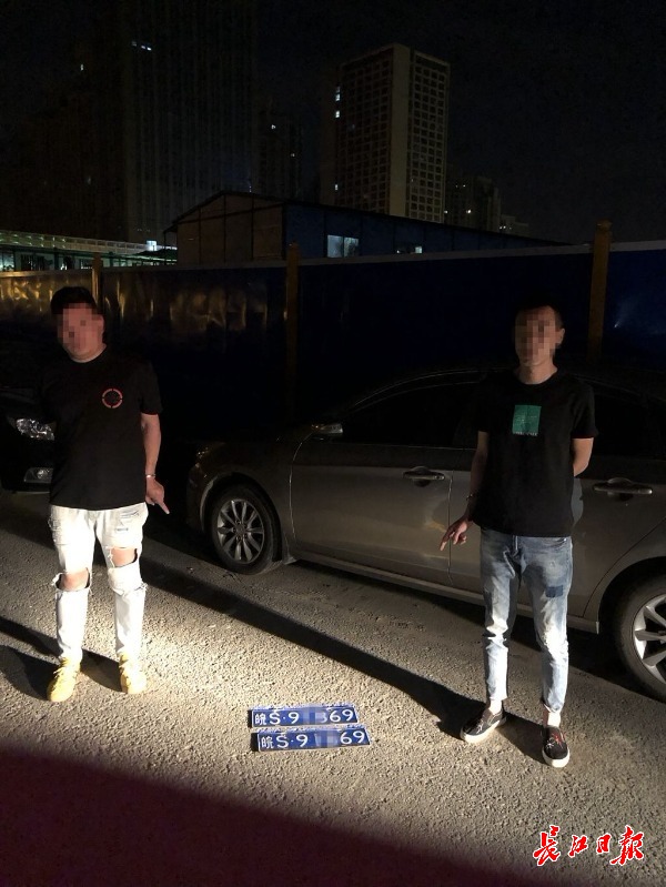 5月20日11时20分,江岸劳动街派出所接到居民报警,赵家条干休所门口一台停在路边的汽车前后车牌被盗。当天江岸区内共有4起类似警情。办案民警推断很有可能是同一伙人所为,后又在洪山区发现1起类似警情。