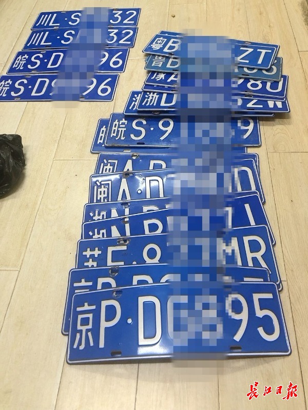 当晚警方连夜对案,除在武汉市内查证的12起盗窃车牌案外,嫌疑人还交代在河南、四川、陕西共盗窃52对车牌并敲诈车主。