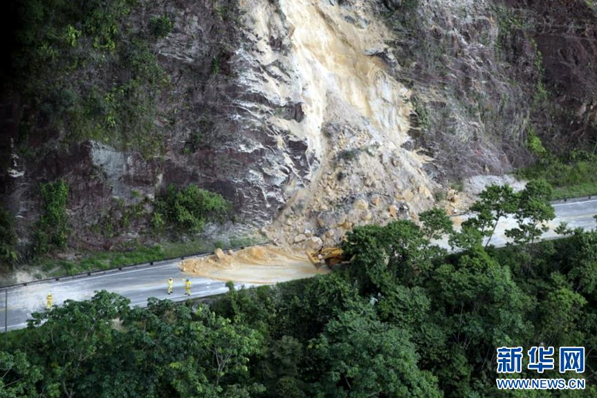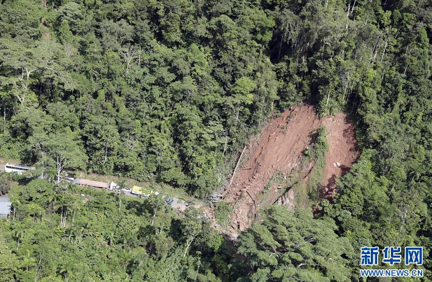 - 这是5月26日在秘鲁尤里马瓜斯航拍的一处由地震引起的滑坡现场。 据秘鲁地球物理研究所公布的消息,秘鲁东北部当地时间26日凌晨2时41分(北京时间15时41分)发生7.5级地震,目前尚无人员伤亡和财产损失的报告。 新华社发(秘鲁通讯社供图)