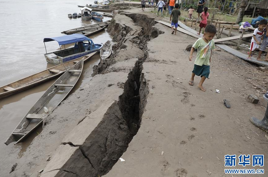- 这是5月26日在秘鲁尤里马瓜斯拍摄的被地震破坏的地面。 据秘鲁地球物理研究所公布的消息,秘鲁东北部当地时间26日凌晨2时41分(北京时间15时41分)发生7.5级地震,目前尚无人员伤亡和财产损失的报告。 新华社发