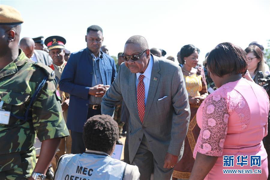 - 这是马拉维现任总统、民主进步党领导人彼得·穆塔里卡(中)在南部乔洛地区一处投票站参加投票的资料照片(5月21日摄)。 马拉维选举委员会27日在布兰太尔公布了21日举行的总统选举结果,现任总统、民主进步党领导人彼得·穆塔里卡成功连任,任期5年。 新华社记者 彭立军 摄