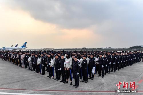 资料图:233名冒充中国公检法机关工作人员实施电信网络诈骗犯罪的嫌疑人被中国警方押解回国中新社记者 陈骥旻 摄