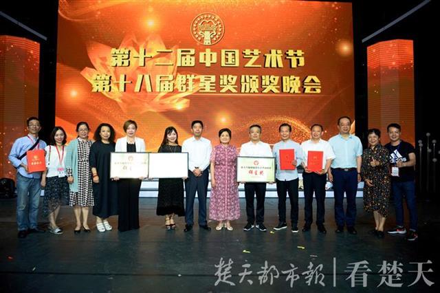 楚天都市报6月1日讯(记者徐颖 通讯员李协萍 邢君成)5月31日晚,第十二届中国艺术节第十八届群星奖颁奖晚会在上海东方艺术中心歌剧厅举行,本届群星奖的20个获奖作品揭晓。湖北省舞蹈作品《击壤歌》、曲艺作品《诗仙搁笔》、表演唱《打银锁》获奖,文化和旅游部副部长张旭出席晚会并向获奖作品颁奖。