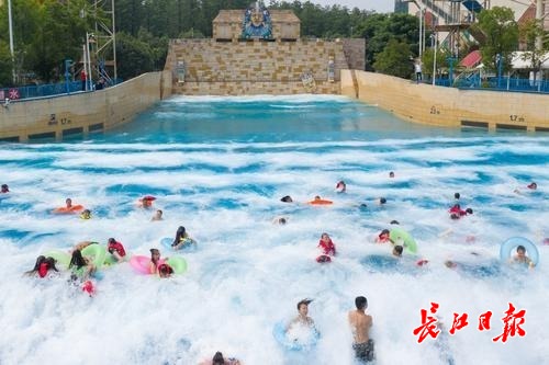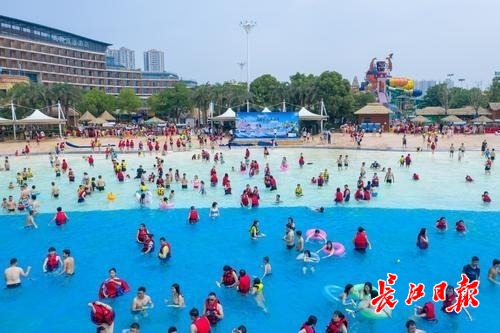 高温步步逼近,早就想来一场酣畅淋漓的耍水狂欢?6月8日上午,玛雅海滩,表演人员在水中拼出长54米宽16米的巨型MAYA字样,宣告玛雅海滩水公园正式开园。17大顶尖水上项目、60余项玩水设施同步精彩开启,首日迎万名游客玩水尝鲜。