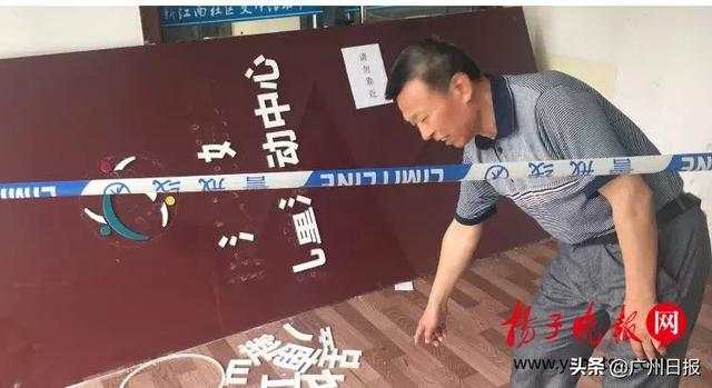 走进活动中心大门,记者看到了砸中孩子的那块钢化玻璃材质的宣传板。倒在地上的宣传板已经被人放在一边,大概3米长,1.5米宽。有居民推测,像这样一块宣传板,至少有200多斤,墙上残留了与宣传板四周相吻合的胶水粘贴痕迹,和右下方一个小小的螺丝孔。孩子的妈妈缪女士说:“这么大的玻璃,竟然只用了这么点胶水固定,怎么可能保证安全。”