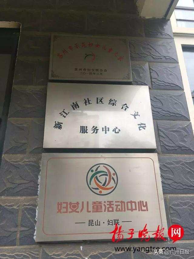 在王先生夫妇的带领下,记者来到了新江南社区内的妇女儿童活动中心,记者看到,在该活动中心门口,有三块牌子,从上至下依次是“苏州市示范妇女儿童之家”、“新江南社区综合文化服务中心”、昆山妇联“妇女儿童活动中心”。门口的地上放着附近居民送来的鲜花和祭奠品,其中,一束鲜花的紫色包装上写着“愿:小弟弟,在天堂没有伤害。”