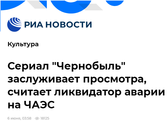 不过,并非所有俄罗斯人都认为HBO版《切尔诺贝利》不好。据俄新社6日报道,俄罗斯南联邦“切尔诺贝利协会 ”主席、曾参与切尔诺贝利灾后清理工作的亚历山大·菲利片科认为,虽然HBO版《切尔诺贝利》有美国宣传的成分和部分情节不准确,但它还是描述了事故之后人与人之间的情感关系,彰显了“清理者”的努力,因而值得一看。