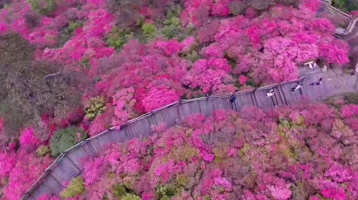 “龟背岭上连片面积10多万亩的古杜鹃群落,被上海大世界基尼斯总部认定为全国‘面积最大的古杜鹃群落’……”来自武汉的游客小林则随手翻出微信里推介的麻城龟峰山景区VR全景展示告诉记者,她之前在朋友的手机上看到这个网上虚拟全景展示,当即带着父母来麻城看杜鹃花海,“非常震憾”,这次她又约了几个朋友,准备在农家乐住两天。