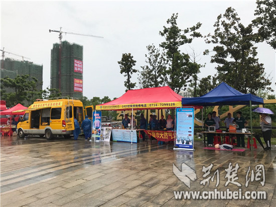 石首市有关部门和企业设置了咨询展位。记者张城摄