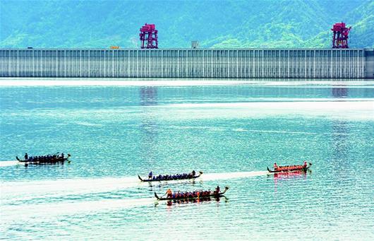 图为:三峡大坝前赛龙舟祭屈原。(本文图片均由视界网郑家裕摄)