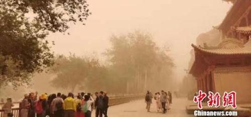 甘肃酒泉遭沙尘暴袭击 敦煌莫高窟等多景区暂闭