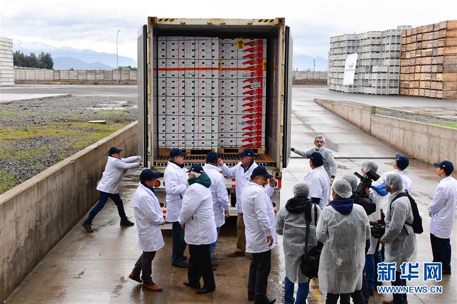 第一批出口中国的智利产梨14日从该国中部奥希金斯大区圣费尔南多装车运往港口。据悉,首批输华的梨共计4个品种,通过30个集装箱运送,每个集装箱运量为20吨。