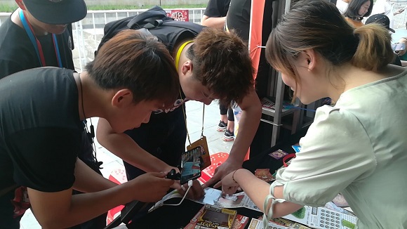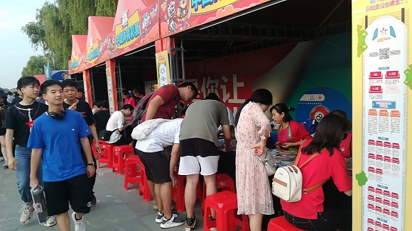 现场一字排开的体彩顶呱刮即开票售卖展位,围满了跃跃欲试的年轻人。