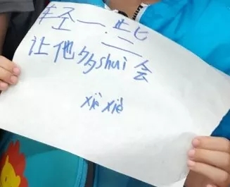 网友“转身后的蓝旗袍”说,当时就寻思,这个小男孩为啥会举张纸,于是便走上前想看个究竟。“小男孩见我向他靠近,先是转头看了看旁边的男子,又将手中的纸张向前伸了伸,好像是故意伸给我看的。”