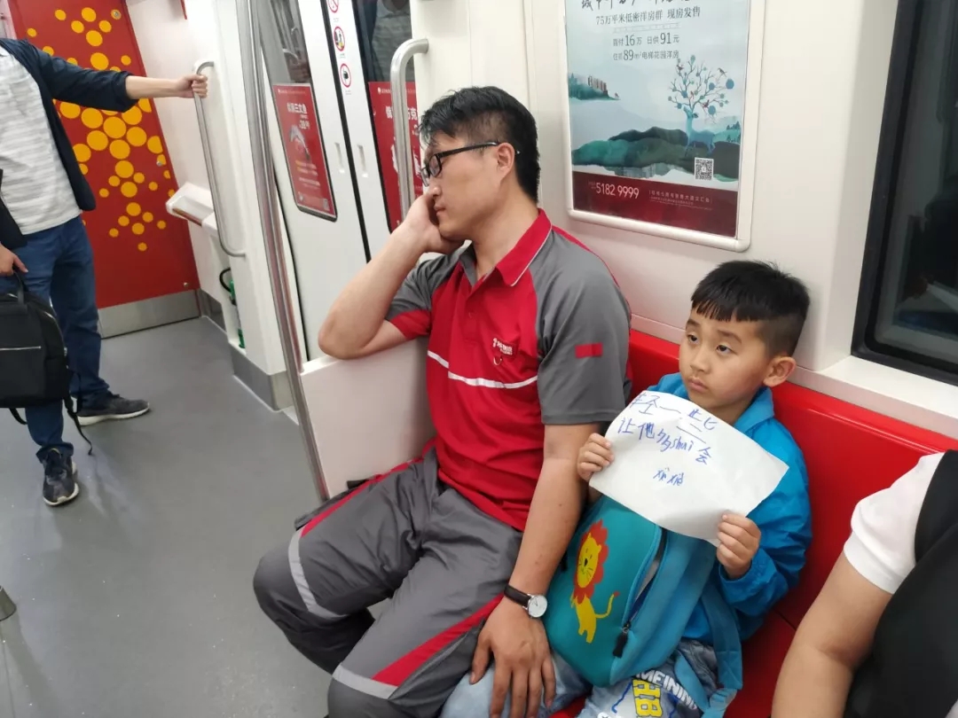 她在途中注意到,小男孩一直未放下手中的纸,当有乘客向他靠近时,他都会将手中的纸向前伸一伸。最让她感动的是,小男孩除了举着纸,还时刻盯着车厢门上的报站器,估计是怕坐过了站。