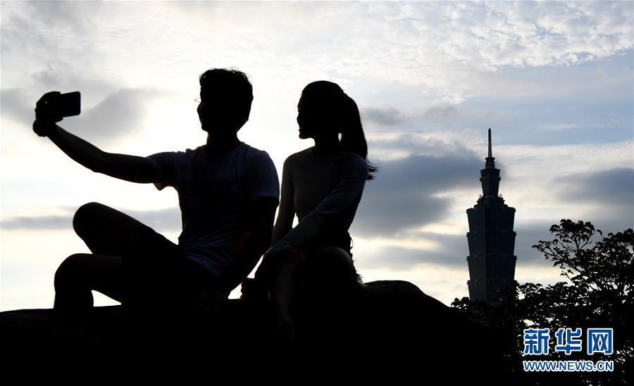 一对情侣在台北市的象山上游览拍照。新华社记者 朱祥 摄 图片来源:新华网