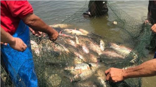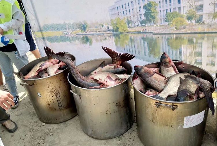 此次捕上来的鱼种类繁多,草鱼、鲤鱼、鲢鱼、鲫鱼等,应有尽有,多达1500斤。