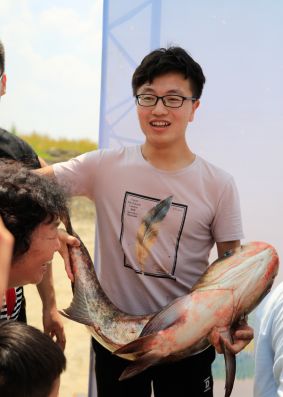 经过两个多小时的布网和等待,11时许,10位师傅和31位学生志愿者齐心协力收拢渔网。随着收网动作,一条条鲜活的鱼儿争相翻腾,不时跃出湖面围观的师生纷纷举起手机,拍下了这“鱼跃”的场面。