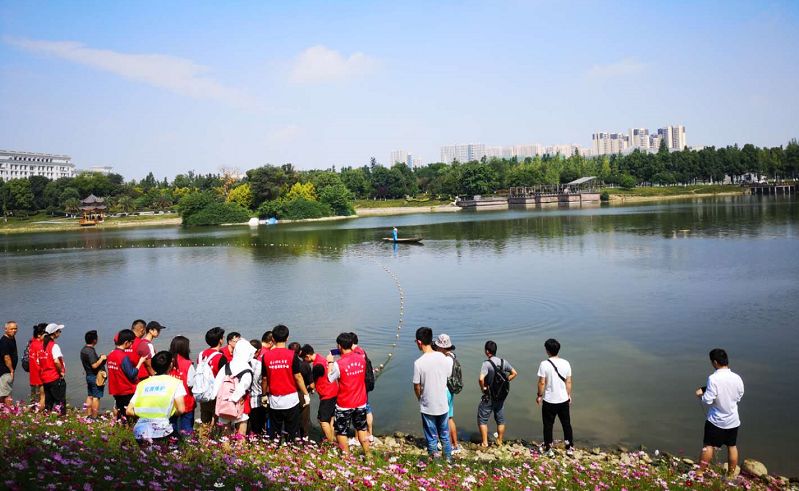 当天一大早,学校的捕鱼师傅们就拉着三张网来到了湖边,这三张网结成的300米长的大网将承担起今天的重任,还有不少毕业生们自愿报名参加活动。上午九点半,这张300米长的大网正式入水,同学们在现场喊起了加油口号。