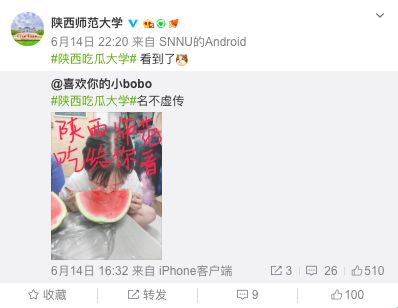 据陕西师范大学官微介绍,为了给学生们防暑降温,让大家过一个清爽的夏天,陕西师范大学为18000余名学生以宿舍为单位,发放了5000多个西瓜。