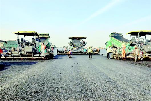 图为:机场跑道施工现场