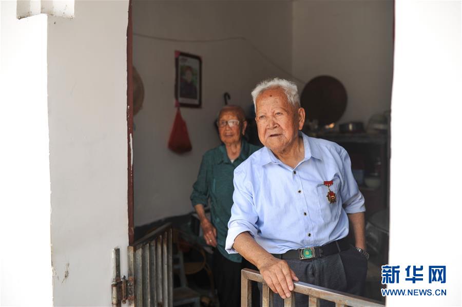 6月16日,在福建省长汀县南山镇长窠头村,91岁的钟宜龙老人和他94岁高龄的老伴涂成秀站在屋内。 钟宜龙老人是福建省长汀县南山镇党委退休干部。这位老党员为松毛岭战斗牺牲的无名烈士“守魂”60余载。 几年前他把祖屋腾出来,用他多年来收集的与红军相关的资料和物件,办起了一个小型的“红色家庭展”,当起了“红色讲解员”。 新华社记者李任滋摄