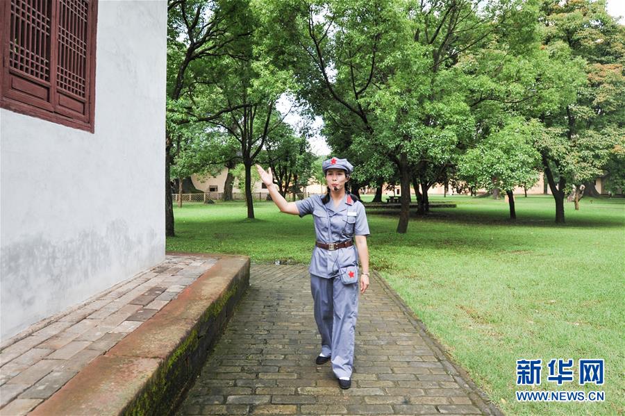 6月11日,红军后代、瑞金市委党校教师、红色讲解员朱慧琳在江西瑞金叶坪革命旧址群讲解。她已从事红色文化讲解工作八年左右。 新华社记者李任滋摄