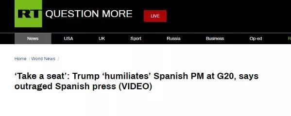 RT还说,与此同时,西班牙热门网络媒体“爱国者日记”则毫不留情地描述了特朗普对桑切斯的“羞辱”。“爱国者日记”还回顾了特朗普和桑切斯在去年7月的北约峰会上尴尬而被迫的相遇,两人几乎没有眼神交流,特朗普只是在尴尬地长时间停顿之后才回答了西班牙领导人的问题。