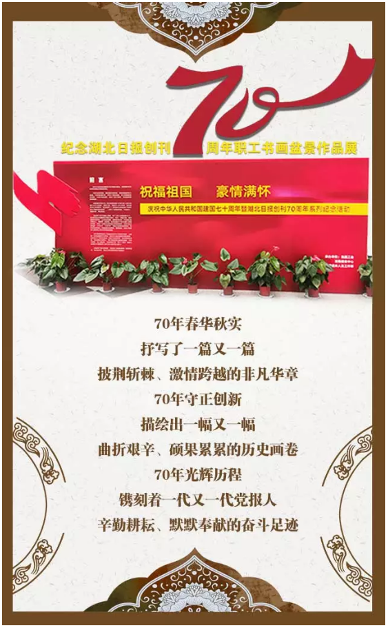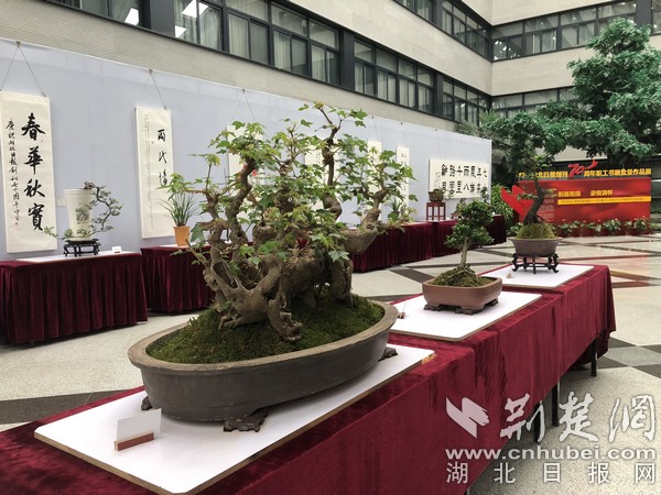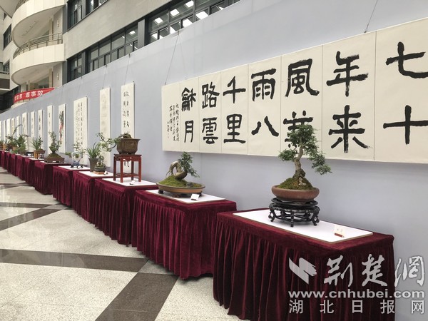 纪念湖北日报创刊70周年职工书画盆景展,已经华丽丽的与我们见面了,此次展出书画盆景作品80余件。画有花鸟山水,书有真草篆隶行,与或曲或直的盆景交相呼应,以景抒怀,托物言志,相得益彰。这么好的作品,是不是让你应接不暇,流连忘返,又意犹未尽呢?