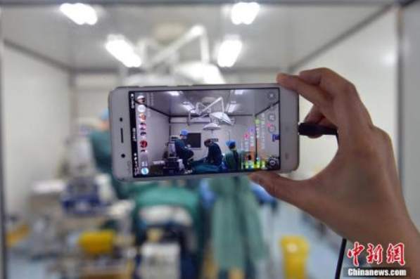 资料图 顾客接受整形手术时,朋友用手机直播 图文无关 中新社 张浪 摄