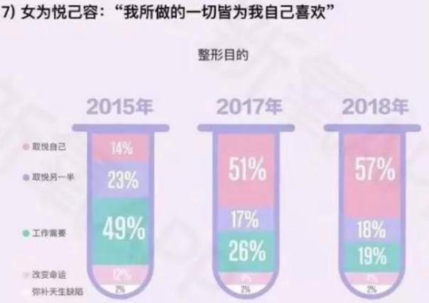 此外,在统计其他整容原因上,上述医美行业调查报告的数据显示,超半数女性选择整容是为了取悦自己;其次是出于工作需要,占比为19%。