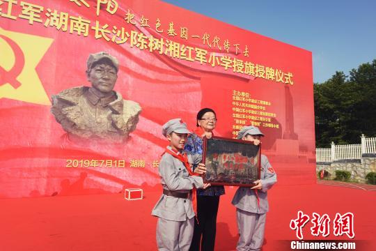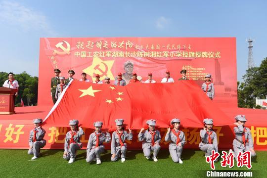 中新网长沙7月2日电(唐小晴 冷冰 王贞瑾)7月1日,以革命烈士陈树湘命名的中国工农红军陈树湘红军小学在长沙县福临镇授牌,以此把红色基因一代代传下去。
