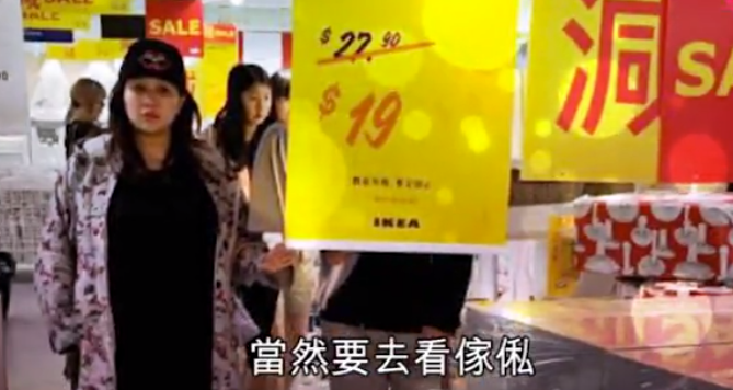 不知道何超盈是不是被降价所吸引,所以在一个折后19元的纸箱面前转悠,可能也是想给新家添置一点家具吧。