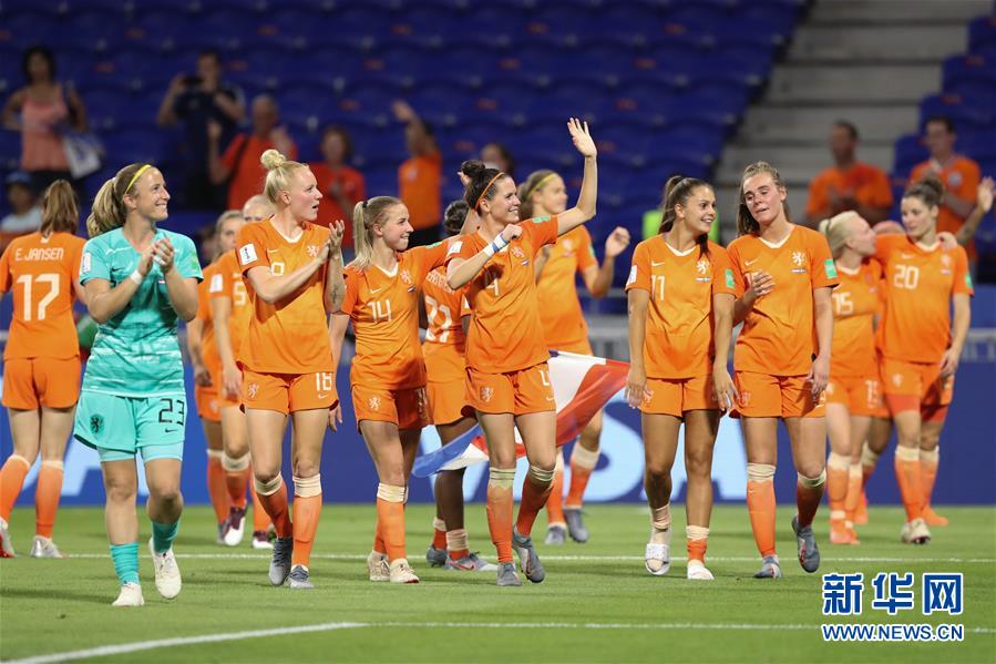 7月3日,荷兰队球员赛后向观众致意。 当日,在法国里昂举行的2019年国际足联女足世界杯半决赛中,荷兰队在加时赛中攻入一球,以1比0战胜瑞典队,晋级决赛。 新华社记者徐子鉴摄