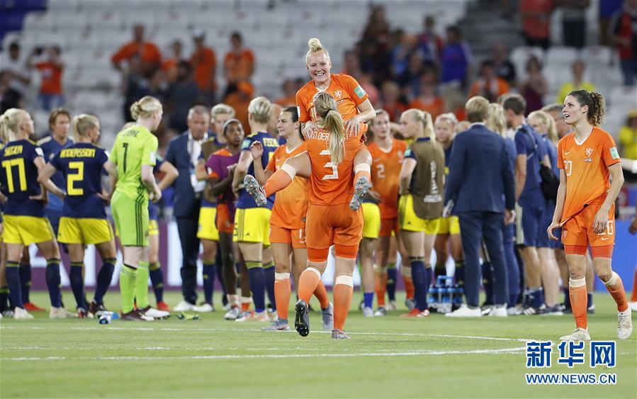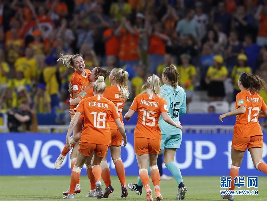 女足世界杯:荷兰胜瑞典晋级决赛在法国里昂举行的2019年国际足联女足世界杯半决赛中,荷兰队在加时赛中攻入一球,以1比0战胜瑞典队,晋级决赛。