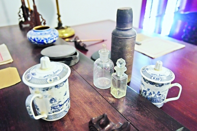 复原的蔡和森办公室内办公桌上的玻璃药瓶